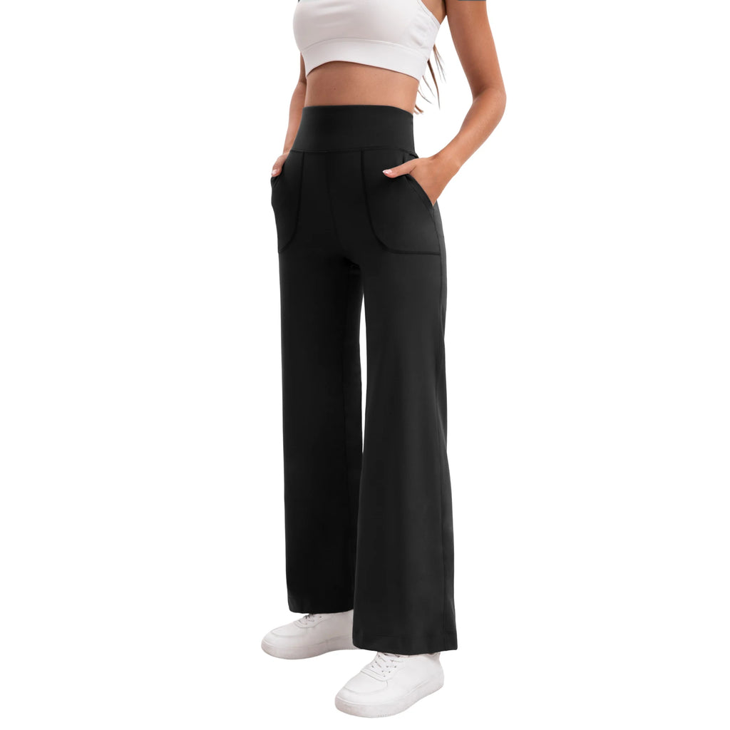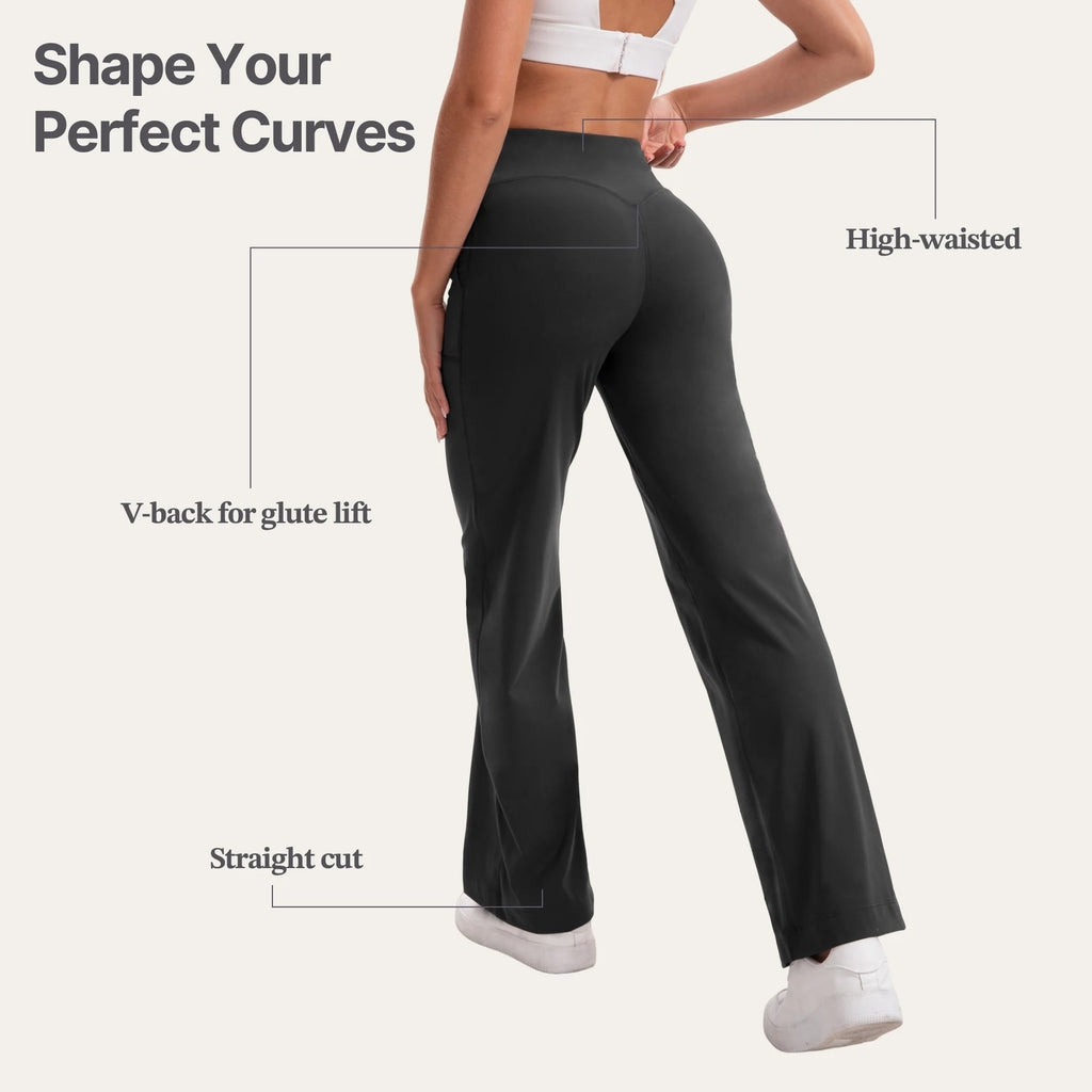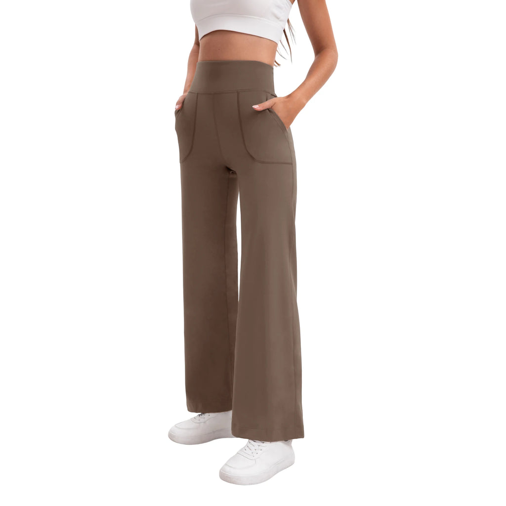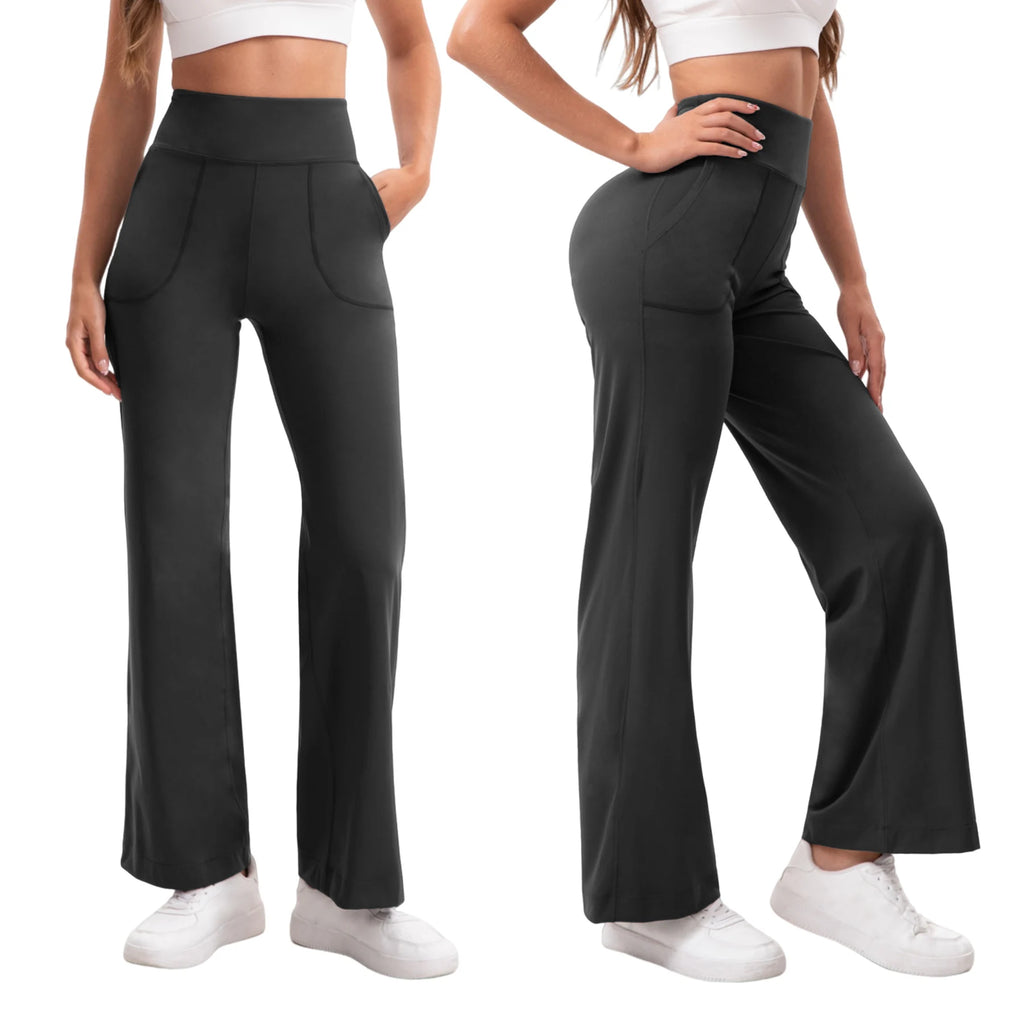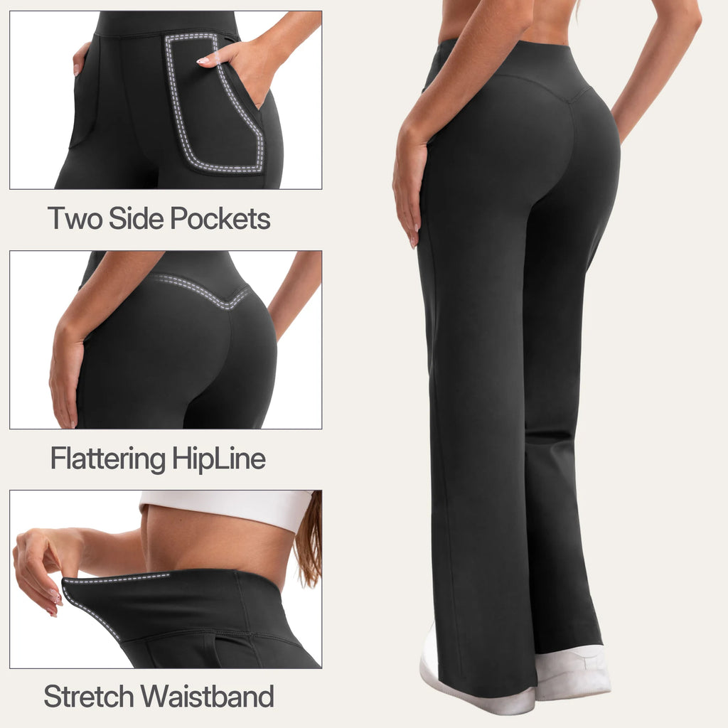 Damen High Waist Yoga Flare Hose mit Taschen und Formeffekt