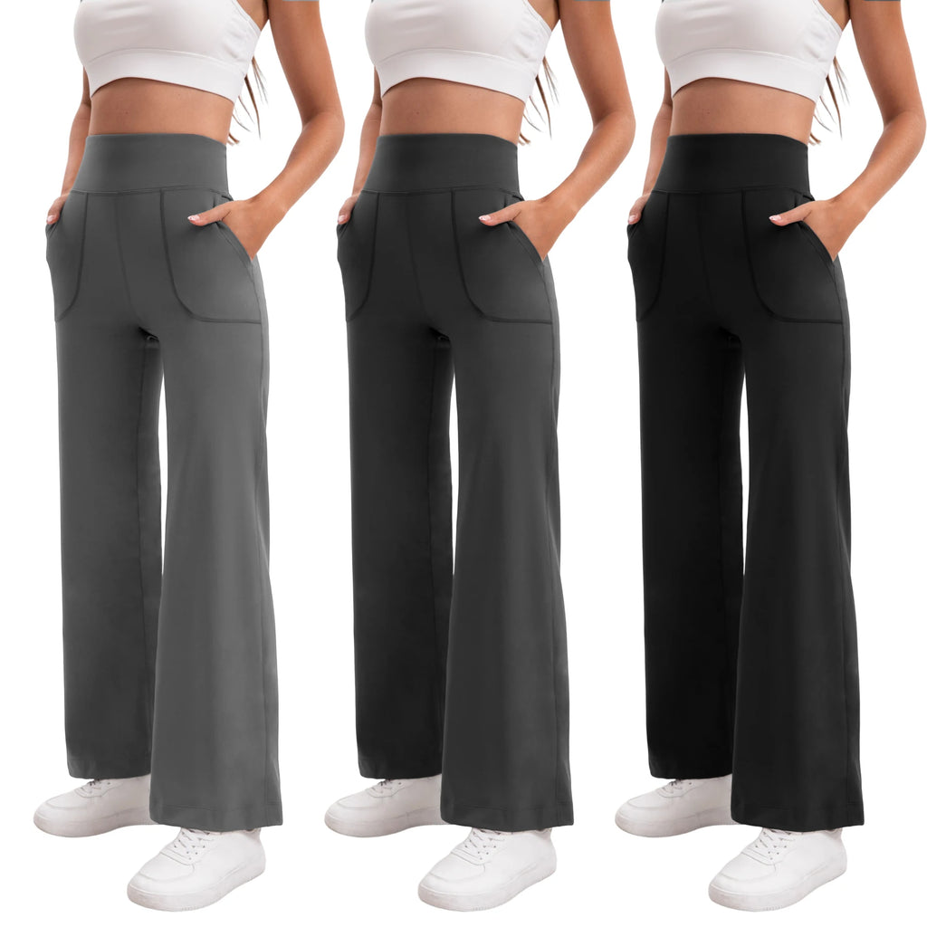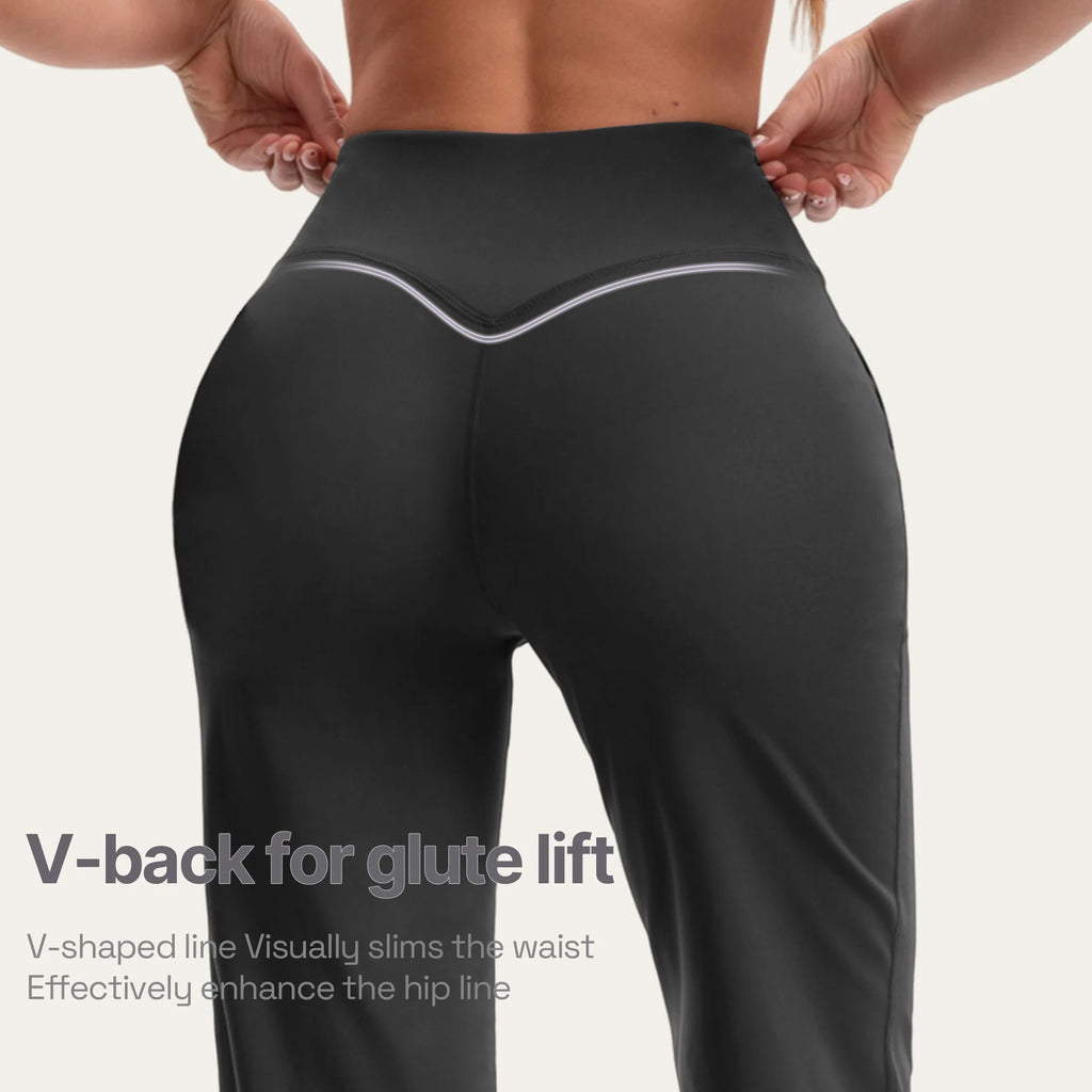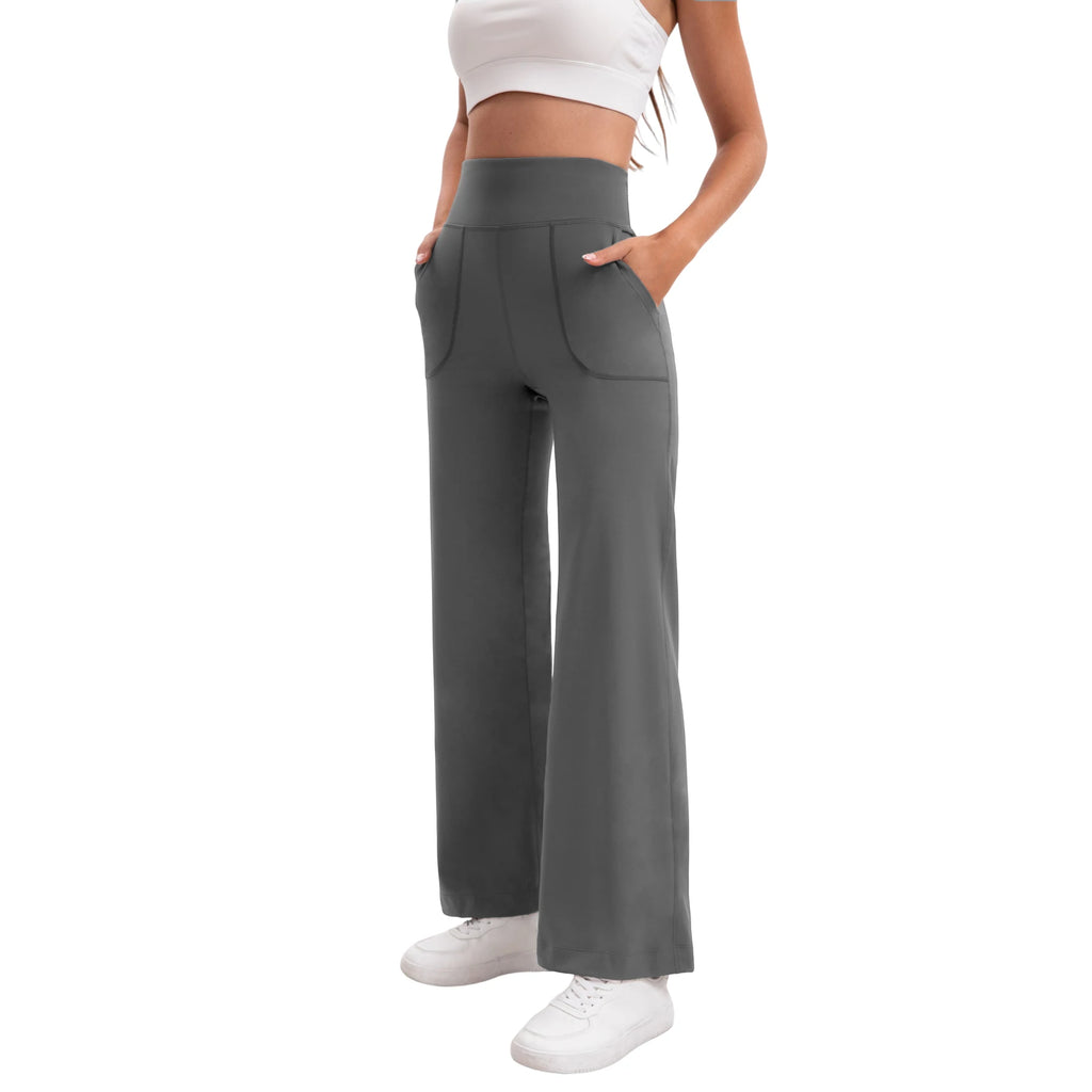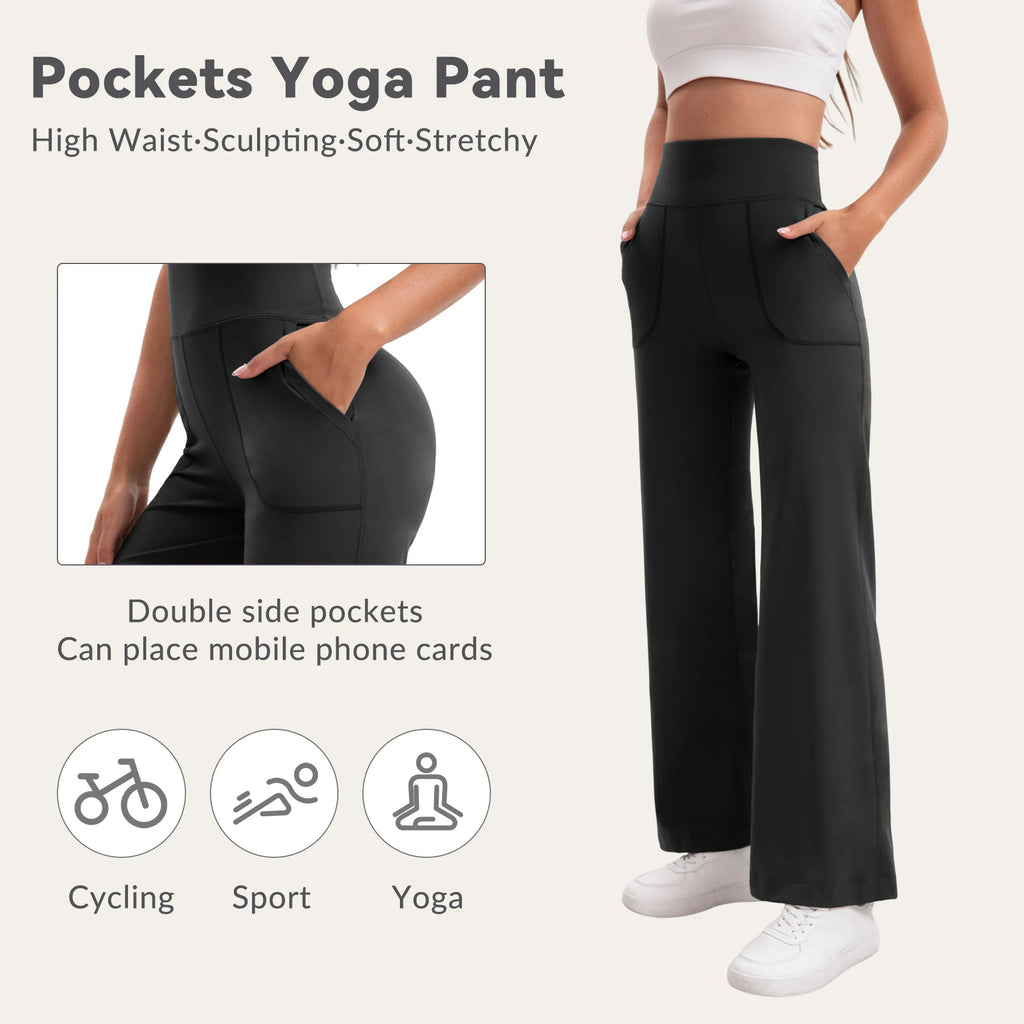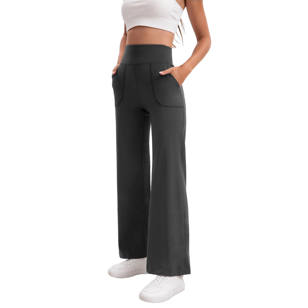 Damen High Waist Yoga Flare Hose mit Taschen und Formeffekt
