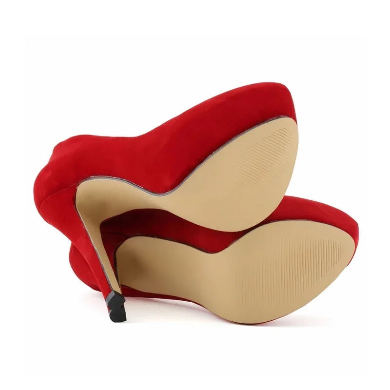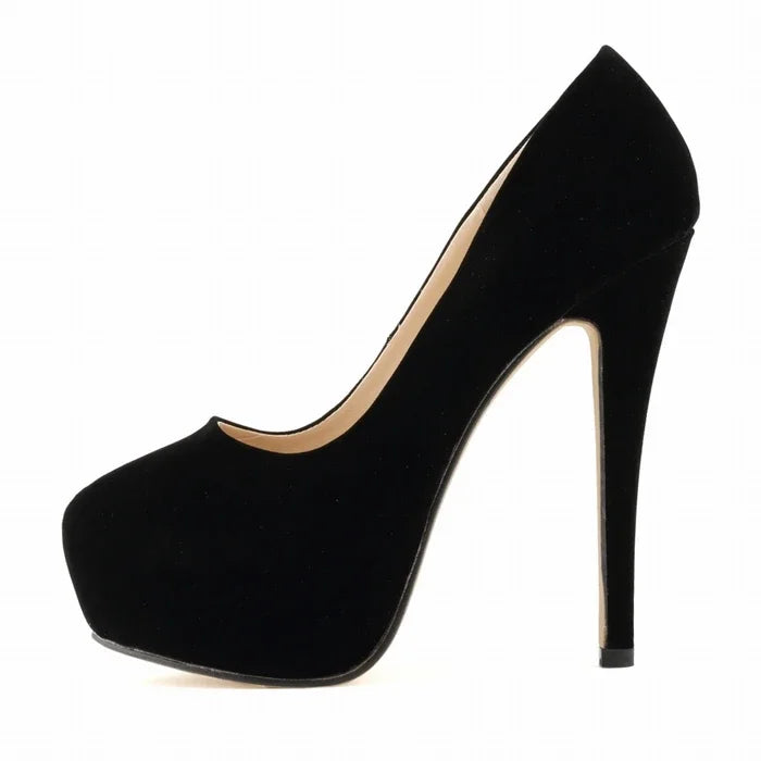 Diese eleganten High Heels verleihen jedem Outfit einen Hauch von Glamour und Selbstbewusstsein. Mit ihrer markanten 14 cm Absatzhöhe und der stabilen Plateausohle bieten sie trotz der extremen Höhe einen überraschend sicheren Stand. Der runde Zehenbereich sorgt für zusätzlichen Komfort, während das schicke Design perfekt für Partys, Clubs oder Hochzeiten geeignet ist. Die schlanke Silhouette betont die Beine und macht diese Pumps zum absoluten Blickfang an jedem Abend.