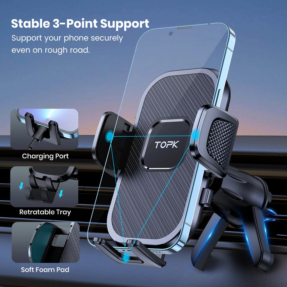 TOPK KFZ Handyhalterung für Lüftung mit verbessertem Metallclip